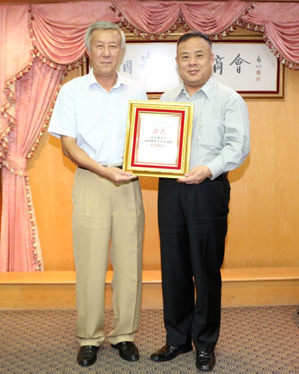 为更好地促进泰国华人青年商会的会务发展、提高商会声誉、扩大商会影响力、加强商会实力,李桂雄会长特邀请黄光茂董事长任泰国华人青年商会名誉会长,并呈送证书。参加欢迎接待的还有:郑松进、吴烈城、许俊龙、黄成、刘少毅等。