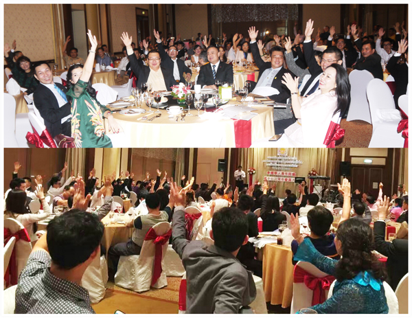 在一片欢呼声中,会员大会举手表决,全票通过李桂雄蝉联泰国华人青年商会第九届执行委员会会长。会议大厅中响起了经久不息的掌声。