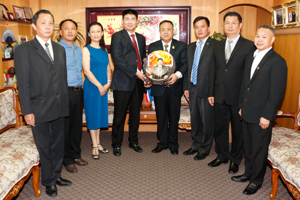 冯文亮会长对青商会的热情接待表示感谢,他说,李桂雄会长在泰华社会具有很大的影响力和号召力,领导的泰国华人青年商会是旅泰新侨民发展壮大的重要平台,他代表山东总商会对李会长荣膺第七届国际潮青潮青会会长表示热烈的祝贺。他介绍说,泰国山东总商会建立刚近2年,前身为山东同乡会,是一个年轻的商会。现有企业会员40多个,其中有11家为国内上市公司,商会致力于成为一个团结、服务企业,对接项目与合作的平台,此次前来拜访李会长,是要向泰国华人青年商会取经学习,加强两会合作。泰国山东总商会计划下月联合主办北京心灵之声残疾人艺术团来泰公益演出的活动,希望得到李桂雄会长的支持与指导,泰国山东总商会将会积极的为泰中友好、泰华社会的发展贡献力量。