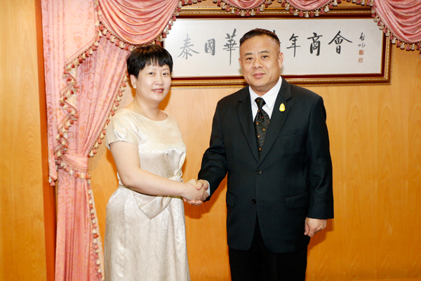 李桂雄会长对谢惠蓉副主席一行的来访表示热烈的欢迎,他介绍说,泰国华人青年商会的主体是祖国改革开放30多年来旅居泰国、来自祖国大江南北的的新华侨、新移民,其中广东籍成员居多,商会成员与广东各市区联系紧密,贸易往来频繁。青商会多年来致力于泰中两国友好往来、经贸合作、文化交流和公共外交事业。泰国与广东联系密切,也是广东侨胞乡亲在海外的主要聚居地。祖国实施“一带一路”发展战略,泰国与广东都位于海上丝绸之路的重要节点上,两地合作空间巨大,青商会将一如既往的为广东企业“走出来”提供平台,牵线搭桥。同时,号召更多的侨胞、企业回乡投资,共同参与家乡的建设。