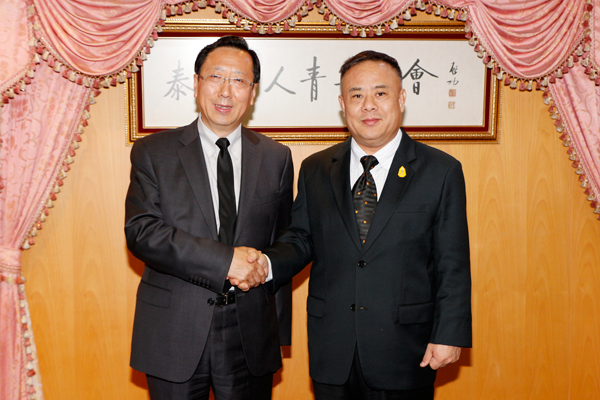 2016年11月4日,天津海外联谊会副会长、天津市委统战部副部长王禹率团访问泰国华人青年商会,受到了会长李桂雄等的热烈欢迎与接待。代表团成员有:天津海外联谊会常务理事、九三学社天津市副主委黄骁卓,天津海外联谊会常务理事王文忠。泰国华人青年商会常务副会长邝锦荣、陈玉宝,副会长黄懿光、锺和武,会长助理黄志乾,副秘书长郑桂涛,总干事黄成等参加欢迎接待。