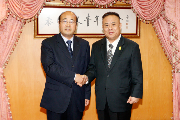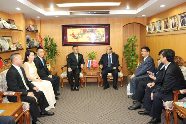 2016年12月2日,河南省平顶山市委书记胡荃率领代表团访问泰国华人青年商会,受到了李桂雄会长等的热烈欢迎与接待。代表团成员有:平顶山市政府外事侨务办公室主任蒋梨、平顶山市商务局长赵水才、鲁山县政府县长杨英锋、叶县政府县长古松、天使集团董事长张先顺等,陪同来访的有:青商会顾问、正大集团副总裁傅学军,正大集团副董事长助理、事业开发部经理刘恭博。李桂雄会长说,我很高兴与大家在泰国华人青年商会迎接我们多年的老朋友胡荃书记率领的平顶山市友好代表团,李会长代表青商会全体同仁热烈欢迎胡荃书记一行的莅访,并对胡书记长期以来关注、关心与支持青商会会务的发展表示衷心的感谢。李会长表示,现在正值泰国稳定发展的大好时期、泰中两国合作与发展的高峰期,泰国是东盟的中心国家,祖国“一带一路”发展战略的实施和东盟一体化的建立为泰中两国的经贸合作创造了更为广泛的平台。近年来,河南省、平顶山市发展很快,有机会将带领商会成员、企业家们到平顶山访问、考察,加强两地的友好往来,共同促进青商会与平顶山企业家的项目合作与对接。青商会欢迎平顶山的企业走出来泰国落地、发展,希望胡荃书记将泰国的好消息带回河南、平顶山。李会长强调,胡荃书记一行此次来访意义重大,深化了“泰中一家亲”的关系,特别是为泰国与河南、青商会成员与平顶山企业家在深入交流、合作起到了关键作用,为两地企业家创造新的商机,也会进一步推动泰国与平顶山的文化、旅游及贸易合作。祝愿胡荃书记一行此次来访圆满成功、成果丰硕!胡荃书记首先感谢李桂雄会长和青商会同仁多年来对河南省经济发展的大力支持,李桂雄会长是我们河南、平顶山的老朋友,长期以来爱国爱乡,为河南省的经济腾飞做出了许多的贡献。泰国华人青年商会在李会长的带领下,凝聚了数千位有实力、影响力的精英与企业家,为中泰两国的友好往来与经贸合作发挥了重要作用。随后,胡荃书记向青商会同仁介绍了平顶山市的经济发展情况和投资环境,他说,平顶山市的历史文化悠久、自然风景秀丽,商周时期属于应国,是中国汝窑陶瓷艺术之乡和中国观音文化之乡,同时也是世界叶、刘、沈、应等姓氏和客家人的祖籍地,著名的尧山风景区和世界最高铜制立佛——中原大佛享誉中外。平顶山矿产资源丰富,其中煤、盐、铁储量较大,丰富的矿产资源为能源、冶金、建材、化学等工业的发展提供了有利条件。现阶段平顶山着力打造新型能源化工基地、现代装备研发制造基地和海内外知名旅游区,在中原崛起河南振兴富民强省进程中积极担当。2016年9月,由国务院侨办与河南省政府联合举办,以“万侨创新·新机遇、新产业、新模式”为主题的第六届华人华侨中原经济合作合作论坛(华合论坛)在平顶山隆重举行,取得了丰硕成果,在海内外引起了积极反响。相信平顶山会成为广大侨胞、企业家事业发展的沃土,希望李桂雄会长一如既往地支持平顶山市的发展,诚邀李会长带领商会更多的企业家到平顶山访问考察、交流洽谈,抓住机遇,寻找商机,实现自身事业的再次腾飞。泰国华人青年商会常务副会长邝锦荣、陈玉宝,副会长陈平,会长助理许少玉、陈贤得、黄志乾,常委欧阳敏,总干事黄成等参加欢迎接待。