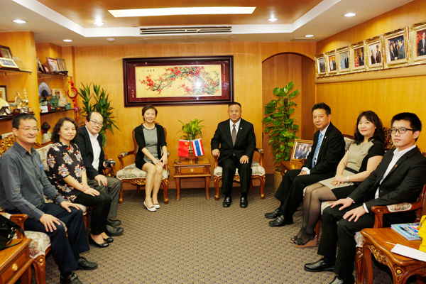 李桂雄会长对姚卓匀副主任一行表示热烈的欢迎,并简要介绍青商会,他说,上海市侨办在推动上海经济发展和为侨服务等方面发挥着重要作用。祖国“一带一路”发展战略实施后,青商会接待了许多来自祖国、上海的企业家,为他们在泰发展牵线搭桥、创造条件。泰国与上海历史渊源深,泰国上海侨胞创立最早的泰国江浙会馆已经有97年的历史。李会长表示,上海是国际化大都市,经济发展势头好。泰国和上海都位于祖国“海上丝绸之路”的重要节点上,产业互补性强,合作空间大。姚卓匀副主任一行来访的时间正是泰中两国合作发展的高峰期,意义重大,将为泰国与上海的友好合作续写新的篇章,为青商会与上海的企业家们创造新的商机与平台。