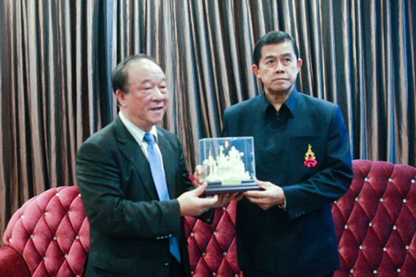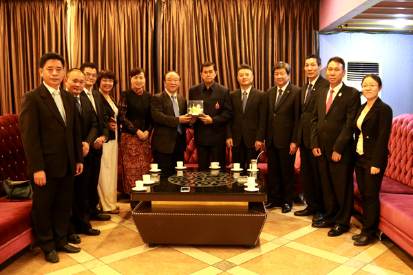 当天下午,泰中友协会长、泰国前副总理功·帕塔朗西阁下在红头船俱乐部会见了代表团一行。功会长对代表团的到来表示热烈欢迎,并详细介绍了泰国的政治经济情况,强调泰国的华人华侨大部分来自广东,希望代表团更好的发挥民间公共外交的优势,进一步推动泰中两国的友好往来和经贸活动,为“泰中一家亲”添砖加瓦。