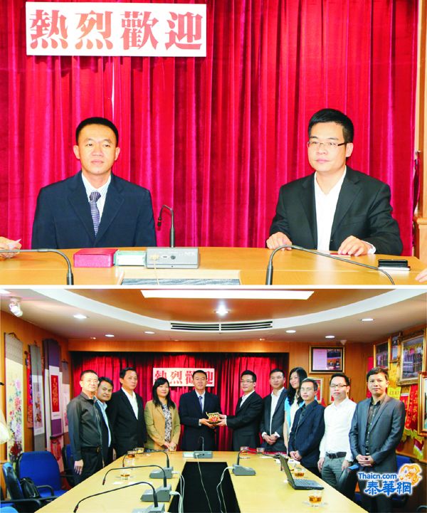 中国广西道路运输协会副会长、广西物流与采购联合会副会长、易大置业投资有限公司董事长俞上林先生携公司工厂技术总监、CCDP.CCNA.CISCOCCDA工程师黄大勋先生,公司市场部经理莫菁宇女士暨深圳市百汇房地产顾问有限公司总经理温世朋先生,营销总监潘雪平先生,广西建筑科学研究设计院主任设计师李林先生,广西易办会商务有限公司总经理梁江淋女士一行,于2013年1月21日下午访问泰国华人青年商会,受到该会副会长陈玉宝先生,会长助理许少玉,主任许俊龙及总干事黄成等热情欢迎,进行座谈交流。