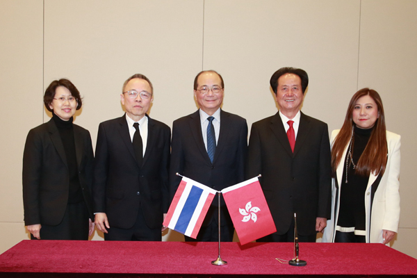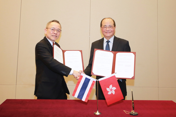 (泰國駐港總領事Aroon Jivasakapimas(左)向香港特區政府教育局局長吳克儉(右)轉交備忘錄並見證局長簽署)