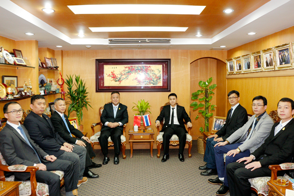 蒋鹏董事长感谢李桂雄会长和青商会同仁的热情接待,他说,李桂雄会长领导青商会为泰中两国友好往来、经贸合作与文化交流等方面做了很多的工作。中泰关系紧密,两国的经贸发展与合作相对成熟,泰国的农产品、水果等产品在国内市场巨大,泰国已经成为中国企业走出国门、进入东盟的首选地,我们对泰国的投资环境和房地产、农业、旅游等项目非常看好,也很有信心,已有初步的投资意向。希望李桂雄会长和青商会同仁为公司在泰落地、发展牵线搭桥,提供便利。