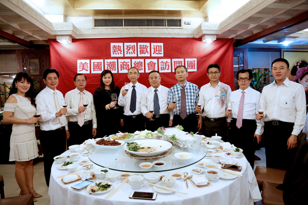 美国潮商总会访问团成员有:美国潮商总会主席团主席、美国南加州潮州会馆建馆委员会主席欧佳霖暨夫人卢怡洁伉俪,美国潮商总会主席团主席、美国纽约潮州同乡会会长陈育昭暨夫人刘若玲伉俪,美国潮商总会荣誉主席、汕头侨商会会长林少华暨夫人陈璇英伉俪,美国潮商总会荣誉主席、美国纽约潮州同乡会名誉会长王丹暨夫人张少怀伉俪,美国潮商总会名誉会长、美国纽约潮州同乡会名誉会长单虹,美国潮商总会共同主席、汕头侨商会名誉会长陈少斌,美国潮商总会荣誉主席、美国南加州潮州会馆永远荣誉会长翁汉丰,美国潮商总会共同主席、美国休斯顿潮州会馆会长孙伟根暨夫人陈映辉伉俪,美国潮商总会共同主席、美国费城潮州会馆会长黄坤暨夫人陈香伉俪,美国潮商总会名誉主席、美京潮州会馆永远名誉会长吴友海暨夫人庄氏晶伉俪,美国潮商总会名誉主席、美国奥斯丁潮州同乡会名誉会长陈泰洲,美国潮商总会名誉主席、美国纽约潮州会名誉会长赖智填夫人江丽霞女士,美国潮商总会名誉主席、美国纽约潮州会名誉会长林思波暨夫人林洁洪伉俪,美国潮商总会名誉主席、美国纽约潮州会名誉会长胡世乐暨夫人廖卫芳伉俪,美国潮商总会荣誉主席、香港清华同学会副会长魏海鹰,美国潮商总会名誉主席、美国纽约潮州会名誉会长郑志光暨夫人肖少媛伉俪,美国潮商总会副主席兼秘书长、美国纽约潮州同乡会顾问陈斯嘉,美国潮商总会荣誉顾问、美国西雅图柬华会长潮州会馆名誉会长杨万,美国潮商总会名誉顾问、美国柬华协会商会副会长张作辉,美国潮商总会常务副主席、美国南加州潮州会馆顾问李骅,美国潮商总会副主席、美国奥斯丁潮州同乡会副会长吴昌武,美国潮商总会副主席李敏松,美国潮商总会名誉顾问、美国纽约潮州同乡会顾问林汉坤,美国潮商总会顾问、美国奥斯丁潮州同乡会副会长郑良毅,美国潮商总会副主席、美国潮商总会青年组副主任唐裕林,美国潮商总会副主席、美京潮州会馆副会长杨焕昌,美国潮商总会副主席、美京潮州会馆副会长杨焕强,美国潮商总会副秘书长、美国潮州同乡会顾问马少颖,美国潮商总会文宣主任杨青,美国潮商总会秘书马曼华,美国潮商总会名誉会长单虹秘书武平平等。