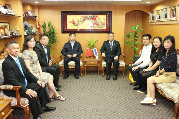 泰国华人青年商会会长助理黄志乾、主任许俊龙、总干事黄成、秘书刘少毅等参加欢迎接待并座谈。