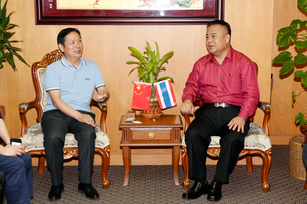 李桂雄会长对穆荣国副厅长一行的来访表示热烈欢迎,并与穆副厅长一行一起回顾了20多年来泰国与河南友好发展的一幕幕往事。他说:河南是青商会的老朋友、好朋友,十多年来联系紧密,商会中也有部分河南籍成员,自己二十多年前就到郑州投资,对河南的投资、旅游环境和发展情况十分了解,多年来一直关心、关注河南的发展。李会长表示,河南是华夏民族的摇篮、中华民族最重要的发源地,河南是多朝古都所在地,历史文化悠久,河南人口多、市场大,与泰国在文化、旅游等方面资源互补性强,青商会一直以来都在宣传河南,积极推动泰豫经贸合作与文化交流,十多年来青商会接待了许多来自河南省及各市、地区的经贸考察团和企业家,为泰国与河南的企业家们创建交流、合作的平台与渠道。欢迎河南省商务厅推动更多河南的企业走出来,与青商会的企业家们建立经贸关系、合作共赢,青商会也会为河南的企业在泰落地牵线搭桥,做好服务。 李会长强调,穆荣国副厅长一行此次来访代表性强、意义大,不仅促进了青商会与河南的经贸往来与文化交流,也为两地的企业家创造新的商机与合作平台。祝愿穆荣国副厅长一行此次来访圆满成功、成果丰硕!