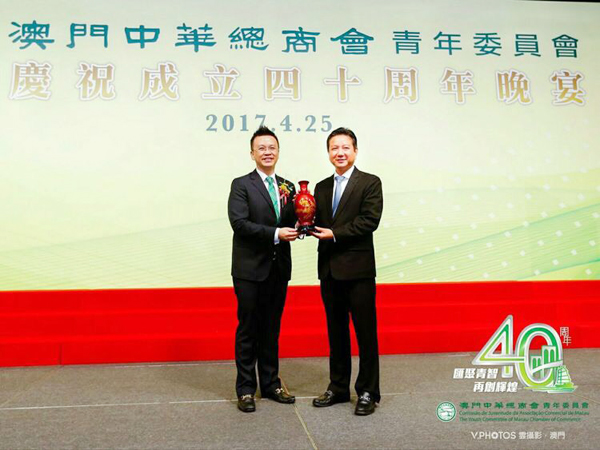 澳门中华总商会青年委员会庆祝成立四十周年系列活动于2017年4月25日在澳门隆重举行。全国政协副主席何厚铧,澳门行政长官崔世安代表、澳门特区政府经济财政司司长梁维特,中联办副主任陈斯喜,外交部驻澳特派员公署副特派员潘云东、全国青联副主席王亚萍等出席了欢庆宴会。
