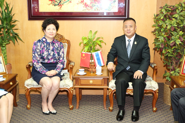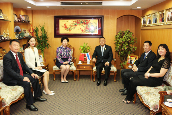 孙燕处长感谢李桂雄会长和青商会同仁长期以来对黑龙江省经济发展的大力支持,并介绍了黑龙江省的经济社会发展情况和投资环境,她说,黑龙江省依托独特的区位条件和便利的铁路、海运交通优势,配合“一带一路”战略实施,在中俄、中欧贸易等方面具有得天独厚的条件和优势,近年来黑龙江省经济发展迅速、趋势良好、发展潜力大。黑龙江省长期以来也很重视与泰国和泰国华人青年商会的友好关系,欢迎李会长和青商会同仁、企业家到黑龙江访问考察,诚挚邀请李桂雄会长带领青商会企业家出席第四届中国·俄罗斯博览会和第二十八届哈尔滨国际经济贸易洽谈会,对接合作、共赢发展。