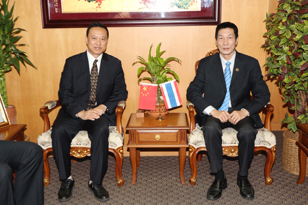 黑龙江省商务厅外国投资促进处处长贾英华率领的黑龙江商务代表团于2017年5月18日访问泰国华人青年商会,受到了常务副会长邝锦荣、副会长刘龙、林启扬,会长助理黄志乾、稽核主任周锡铭、副秘书长周昭耿、郑桂涛、福利主任许俊龙、执委张应胜、何晓东、张高阳,总干事黄成等的热情欢迎与接待。