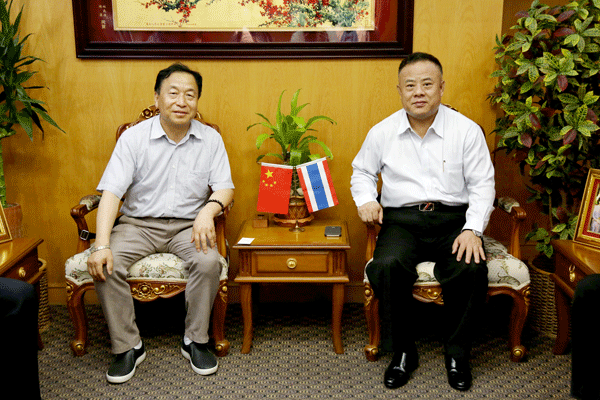 李桂雄会长向刘一良会长一行的来访表示热烈欢迎,并向访问团介绍了青商会的组织机构、青商会与陕西省的友好发展历程及投资合作情况。李桂雄会长说,青商会有几位成员在陕西省投资非常成功,贸易和水果的生意也做得非常好。现在是泰中合作的高峰期,泰国是中国“一带一路”战略的重要节点,地处东盟的中心,“泰中一家亲”深入民心,人文环境与投资环境都很好,泰国与陕西省“一南一北”,农业、工业和旅游业俱全,合作潜力大。李桂雄会长表示,刘一良会长一行的来访深化了陕西省与青商会的友谊,为两地的企业家对接、合作创造了平台。今天来访的都是企业家,泰国是企业家投资开拓市场的好地方。希望代表团在泰国多走走、看看,将泰国的好消息带回祖国和陕西省,期待访问团与商会企业家们交流合作、实现共赢。