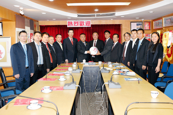李桂雄会长首先代表青商会全体同仁对余鹏春主席率团莅临青商会访问表示热烈的欢迎,对余主席长期以来关心、支持青商会发展表示衷心的感谢,并回顾了青商会与香港客家及梅州市的友好发展历程。他说:今天很高兴在青商会迎接余鹏春主席一行来访,余主席在香港是赫赫有名的企业家,带领香港梅州联会团结一致,为香港与家乡、梅州的繁荣进步与友好往来做出了突出的贡献。泰国与香港的经贸关系密切,青商会有许多广东潮汕籍企业家,客家人也不少,正如梅州谭君铁书记来泰访问时所说:梅州也是粤东地区的后花园,自古“潮客一家亲”。目前,许多来泰投资的梅州、香港企业家都把青商会作为经贸合作的桥梁与平台,青商会同时也是“梅州-曼谷经贸文化联络处”所在地,在推动泰国与梅州的友好往来、经贸合作、文化交流及乡情乡谊的传递等方面做了许多工作,梅州市经济发展势头很好,青商会将一如既往、全心全意的为加强泰国与家乡、梅州及外界的友好关系做好服务。