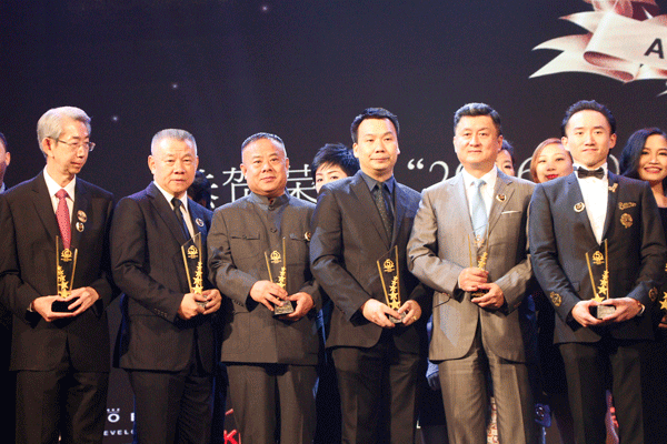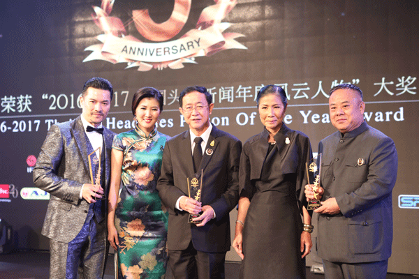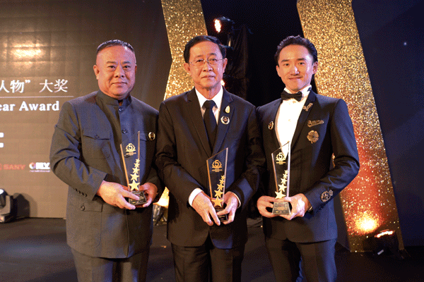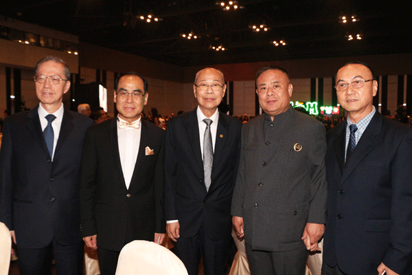 从左至右:中国著名演员吕良伟、亚洲大众集团董事长郭蕊女士、泰国交通部部长阿空阁下、泰国旅游与体育部部长果甘阁下、李桂雄会长在颁奖典礼上