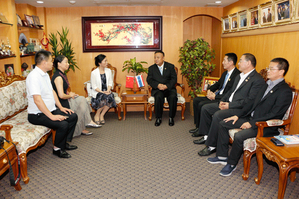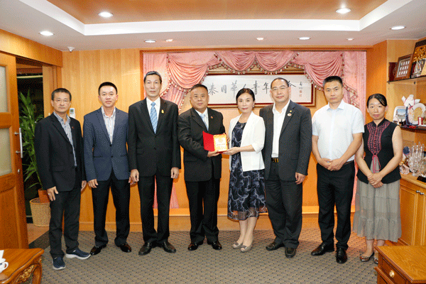 陈钟林副主席感谢李桂雄会长的热情接待,对李桂雄会长多年来为天津与泰国的友好往来与经贸合作所作出的努力感到钦佩。她说:李桂雄会长和青商会同仁在海外为广大侨胞与祖国、家乡架起了桥梁,搭建了良好的平台。天津市侨联是天津市委市政府联系广大归侨、侨眷和海外侨胞的桥梁和纽带,天津的发展离不开华侨华人的支持,每年举办的“天津侨博会”等活动也期待广大海外侨胞、企业家的积极参与。此次响应祖国“一带一路”伟大战略来泰访问,感觉泰国与众不同,是中国企业“走出来”投资发展的好地方。天津市侨联携手泰华侨社举办的“亲情中华--泰国旗袍文化周”,将于今晚在曼谷中国文化中心拉开帷幕,为热爱旗袍的华人姐妹搭建一个体验和展示中华传统文化的舞台,凝聚华人民族情、爱国心。此外,由《长卷》创作团队与天津市侨联再次联手举办的《千年之约一带一路一家亲长卷》活动也将在泰国举行,届时恭请李会长与青商会同仁出席活动,共同推动天津与东南亚各国的友好交流与合作。诚挚邀请李会长带领青商会企业家多到天津走走看看、参观考察,为两地企业家创造更新、更好的平台,为天津与泰国的经贸合作注入新的动力。