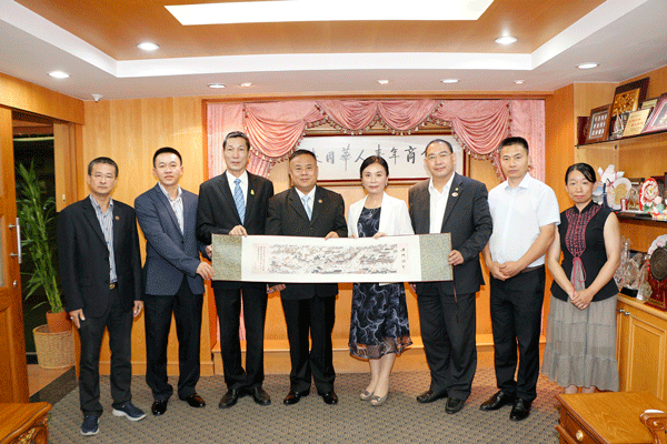 为响应、实施祖国"一带一路"伟大战略,增进泰国与天津两地的合作交流,中国天津市归国华侨联合会常务副主席、市妇女联合会副主席陈钟林女士率领天津市青年书画艺术研究院院长荘雪阳女士,天津市侨联文宣部部长段毅先生一行,在泰中华商会秘书长刘振宁先生等陪同下,于2017年7月10日访问泰国华人青年商会。受到了会长李桂雄,常务副会长邝锦荣、陈玉宝,总干事黄成等的热情接待。