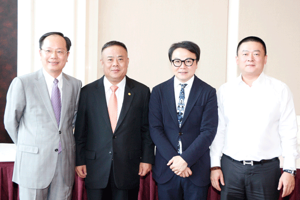 左起:深圳潮青会主席、深圳市金活实业有限公司董事局主席赵利生,李桂雄会长,香港达成集团总经理、香港佳宁娜集团总经理马鸿铭,深圳市新的社会阶层人士联合会主席、前海置富金融控股集团董事局主席马少福