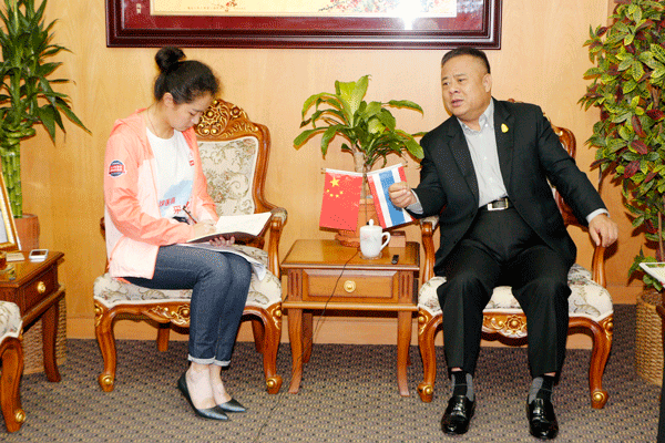 为迎接第五届世界客商大会召开,弘扬“大客家、商文化”主题,展现全球客商精神风貌,响应与实施“一带一路”发展战略,2017年7月18日,《梅州日报》主任李莹率记者张珂、刘晓娟、王玉婷访问泰国华人青年商会,受到泰国中华总商会副主席、泰国华人青年商会会长、梅州-曼谷经贸文化联络处负责人李桂雄先生与青商会青年客商的热情欢迎与接待,随后李桂雄会长在青商会会客室接受《梅州日报》的采访。