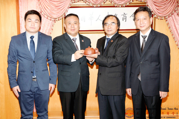 蒋国兴大师表示,青商会与李桂雄会长多年来为中泰两国的文化艺术交流提供了平台,为传播、弘扬中华优秀传统文化发挥了积极的作用。蒋大师介绍说,他从事陶艺研究和创作30年来,坚持走“大陶艺”的发展之路,博采众长,挖掘并丰富了传统彩陶艺术的表现形式和内涵,形成了具有海派特色的“沪上彩陶”,被国家认定的设计发明专利有46项,在保护海派建筑历史遗产、传承发展传统陶瓷艺术方面作了许多工作。蒋大师组织成立的上海市劳模创新工作室——“蒋国兴陶瓷艺术创新工作室”,打造了一个新的环境陶瓷艺术、海派紫砂艺术的创新研究阵地,以及国内外高校的产、学、研合作和学生陶瓷艺术校外实践创新基地。为响应“一带一路”倡议,特别设计了以“大藏经”为主题的“龙藏四海壶”,此次来泰是沿着“一带一路”国家,推动中国传统的陶瓷艺术走出国门,让中国优秀传统文化在丝路国家绽放异彩,助力“一带一路”建设。随后,蒋国兴大师向李桂雄会长赠送宝贵的陶艺收藏品,以作留念。