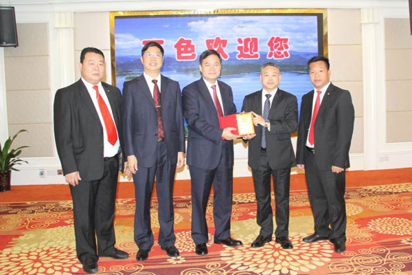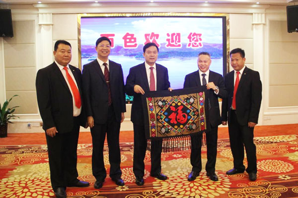 泰国华人青年商会会长助理黄志乾,执委曾子云、何洋声参加2017年9月12日第十四届中国—东盟博览会广西百色市人民政府举办的“一带一路”高峰论坛推介会和签约仪式。在大会上,受到百色市人民政府周异决市长、常务副市长容贤标的亲切会见与接待。宾主互送纪念品。