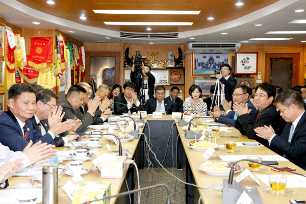 黄小祥副主席代表考察团企业家们对李桂雄会长等的热情接待表示衷心感谢。他表示,自新中国成立以来到改革开放,共经历了几个阶段,中国实现了从站起来、富起来到现在强起来的发展与变化。此间,离不开海外华侨华人的支持和参与,许多海外华侨潮人受到祖国的感召,纷纷回国投资,积极支持祖国的发展、建设,为祖国的改革开放与现代化建设做出了突出的贡献。“一带一路”倡议的实施,不能仅限于国有资本、国有企业,我们民营企业、民间资本也要积极参与,我们要利国利民利企业。此次来泰考察,希望与在泰华商、潮商、企业家联手合作、抱团发展,在“一带一路”的大背景下,共创美好明天!