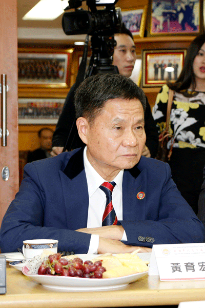 参加欢迎接待和座谈的有:泰国华人青年商会会长李桂雄,泰国警察总署督察指挥叻塔蓬中将,泰国华人青年商会常务副会长、泰中侨商联合会会长邝锦荣,泰国华人青年商会常务副会长李嘉淳,泰国工商业联合会执行主席、泰国工商总会副主席林伟,泰国中国企业总商会副会长、泰中罗勇工业园董事总裁徐根罗,泰中华商会主席庄稼及秘书长刘振宁,中国新华通讯社曼谷分社社长明大军,泰国华人青年商会副会长黄懿光、刘龙、钟和武、郑树丰、陈平,会长助理许少玉,世界莞商联合会泰国办事处主任、东盟卫视董事长黄创基,泰国山东商会会长冯文亮,春秋航空公司总经理余佳丽,泰国华人青年商会稽核主任张楚南,福利主任许俊龙、新闻主任张柱,副秘书长周昭耿、郑桂涛,常委周瑞强,执委萧伦,总干事黄成,会长秘书刘少毅等。