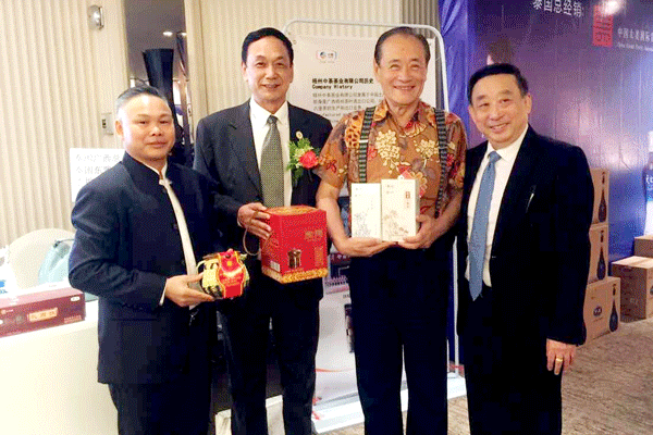 泰国华人青年商会会长助理、泰国贵族集团总裁黄志乾总代理的梧州六堡茶也在泰国新年礼品展销嘉年华盛会上亮相,受到与会嘉宾的好评。黄志乾总裁感慨道:“通过参加此次活动,发现很多泰国华人企业家都在喝六堡茶,六堡茶在泰国有着很大的市场前景。” 据了解,六堡茶的养生保健功效有:提神醒脑,消除疲劳,除油腻、助消化、醒酒,降血压,防止动脉硬化,保健美,减肥胖,延年益寿,祛湿,养胃;并且耐于久存,存放时间越久,保健功效越好,价值更高。六堡茶喝出健康,存出财富。