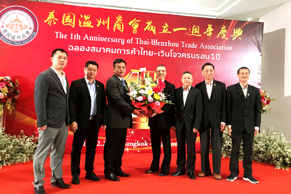 泰国温州商会一周年庆典活动于2017年12月14日晚,假瑞士凯丽皇酒店宝伦厅举行,祁晓云会长主持庆典活动。泰华各界出席庆典活动首长众多,祝贺温州商会会务蓬勃发展,蒸蒸日上。泰国华人青年商会出席庆典活动的有副会长钟和武,会长助理黄志乾,福利主任许俊龙,副秘书长周昭耿、郑桂涛,总干事黄成等。