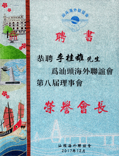 2017年12月15日,汕头海外联谊会成立30周年暨八届一次会议在汕头帝豪酒店隆重举行,近300位来自海内外的嘉宾、乡亲、贤达欢聚一堂,畅叙情谊,共谋发展。会上,汕头市委书记陈良贤出席会议并讲话,郑剑戈市长介绍汕头经济社会发展情况,广东省委统战部副部长李阳春、汕头市委常委、统战部部长陈丽文分别致辞。