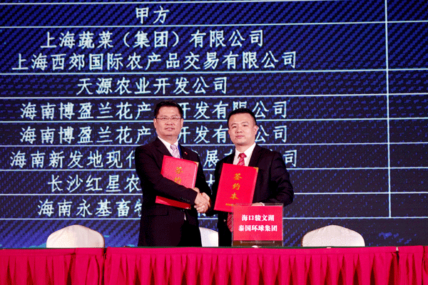 在12日下午的举行的2017年海南农业投资项目招商暨金融推介会,吸引了近260名来自全国各地的客商及嘉宾参加。现场签署农业合作协议27个,战略合作框架协议13个,涉及种植、畜牧、加工、休闲农业、智慧农业等领域,总协议投资金额346.52亿元。其中,上亿元的合作项目有17个,特别是今年获批的61个海南共享农庄项目招商引资总签约金额突破了127亿元。项目签约方有来自泰国、马来西亚、新加坡、蒙古国、俄罗斯、香港及台湾等国家与地区的投资商,充分体现了今年冬交会国际化的特色,也成为冬交会系列活动的重要亮点。其中泰国华人青年商会支持深圳泰中文化产业集团公司项目“中泰汇·云龙御养共享农庄”与泰国环球集团签约合作协议。