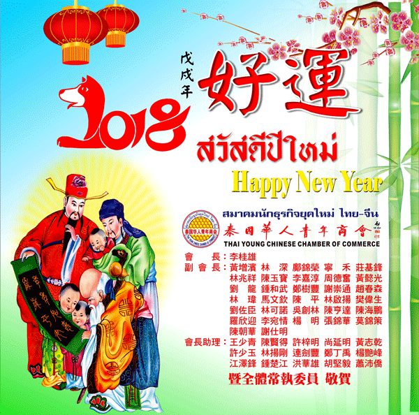 泰国华人青年商会李桂雄会长携商会全体同仁 恭祝您和家人新年快乐、吉祥如意!