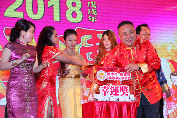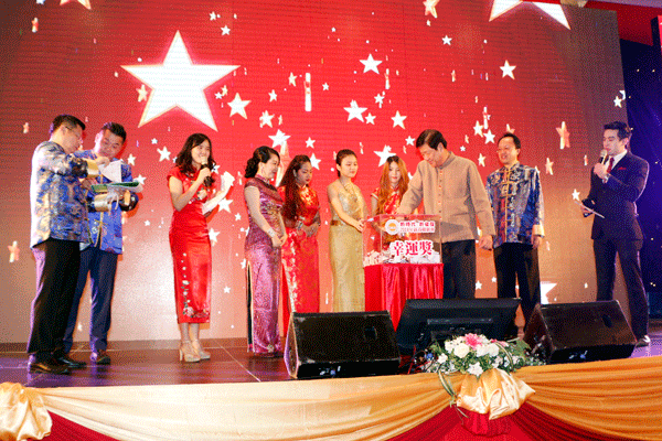 联欢会上,青商会各位领导、同仁共同上台向在泰华侨华人、祖国与家乡的亲人们拜年,为祖国与大家送上好运和祝福。随后,送上的大合唱《歌唱祖国》凝结了爱国之声、人民之心、民族之魂,唤起来大家的赤子之心,唱出了海外华侨华人的心声。《不忘初心》曲调悠扬、歌词暖心,让人重温红军长征那段艰苦卓绝的峥嵘岁月,道出对祖国和人民的浓浓深情,《泰国华人青年商会会歌》令大家共同回忆起青商会一路走来的酸甜苦辣与美好时光。游戏小品“执子之手,与子偕老”令人捧腹,游戏“中泰一家亲”风趣搞笑。象征好运的抽奖活动贯穿整台联欢会,数百份幸运大奖纷纷承载着2018年的好运和吉祥,相继送入大家手中,点燃了整场联欢会的气氛,其中一等奖9个——1铢重黄金(5个),林玮副会长赞助的三星NX500相机1部(2个),李嘉淳副会长赞助的各价值100,000泰铢(折合人民币约20,000元)的蓝宝石戒指1枚、红宝石项链1条;二等奖22个——2钱重黄金(10个),春秋航空公司赞助的曼谷直飞中国所有地方的往返机票1套(4个),林玮副会长赞助的三星S2平板计算机1台(6个),陈贤德会长助理和黄少林副秘书长赞助的空气净化器1台(2个);三等奖70个——现金红包1个,每个5000泰铢(40个),刘龙副会长赞助的茅台王子酒2瓶+时磊秘书长赞助的杜康酒2瓶+万先钰会员赞助的泸州老窖2瓶(20个),杜金玲执委赞助的高尔夫球包1个+杨艳峰会长助理赞助的车用灭火器2个(10个);四等奖50个——张楚南主任赞助的旋风拖把1套+姚亿盛执委赞助的蜂蜜2罐+蔡孝兴顾问赞助的价值500泰铢名创优品 MINISO 现金券2张。常执委们纷纷登台引吭高歌助兴,气氛欢愉,场面温馨。李嘉淳、孙丽玲合唱的《你最珍贵》,林婷婷带来的吉他弹唱为在座领导、嘉宾留下了精彩、宝贵的记忆。《明天会更好》带着大家对明天的美好祝愿,将联欢会推向了高潮。泰国华人青年商会2018年新春联欢会,在欢乐吉祥的气氛中圆满结束。