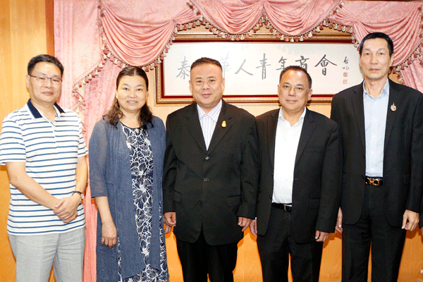 李桂雄会长首先代表泰国华人青年商会全体同仁,对邓锐副局长与魏宇文教授等的来访表示诚挚的欢迎。他说,泰国华人青年商会是梅州-曼谷经贸文化联络处所在地,感谢梅州市委市政府及各级领导长期以来对青商会的关心、支持与信任,邓局长时刻牵挂旅泰侨胞乡亲,在公共外交与侨情联络等方面做了大量的工作。邓局长此次在两会期间,响应“一带一路”的大背景下,来泰访问,为旅泰华侨华人带来了中国的好消息、新消息,为泰国与梅州在侨、商两界的合作提供了更多的契机。他说,我们相信在习近平总书记新时代社会主义思想的引领下,海外华侨华人与祖国人民一定能够共助民族复兴,共享祖国发展红利。青商会也将继续履行联络处职责,发挥在泰影响力,积极讲好中国、梅州的故事,宣传美丽中国、魅力梅州,为泰中两国及梅州的发展添砖加瓦!祝邓局长一行访问圆满成功!