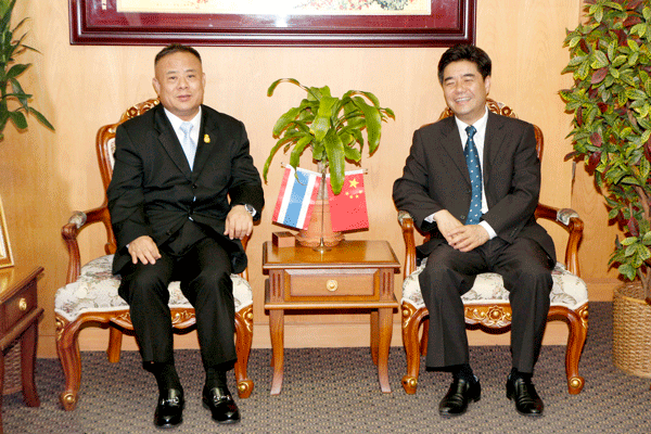 李桂雄会长首先代表泰国华人青年商会全体同仁对胡钦太副校长一行的来访表示热烈的欢迎,并回顾了华南师范大学泰国附属学校的筹备过程,他说,去年5月,华南师范大学时任校长刘鸣率团访问泰国华人青年商会,共同磋商在泰国设立华南师大附属学校以及推动泰中教育交流合作事宜,为泰国与华南师大的友好合作奠定了良好基础!今年3月,我率团访问华南师范大学,受到了朱孔军书记、王恩科校长等领导的会见,明确了华南师范大学响应、实施“一带一路”倡议走出去,在海外合作办校的各项程序性工作安排。李会长表示,华南师范大学是中国著名的高等学府,多年来为国家培养出众多优秀的栋梁之才,校友遍布世界各地,享誉中外,华南师范大学为中国的基础教育、科技进步和经济社会发展做出了巨大的贡献!胡钦太副校长一行在中国教育对外开放、融入世界教育改革发展的新时期,来泰考察,进一步洽谈合作方向,签署《合作备忘录》、落实华南师范大学泰国附属学校项目进程,促进项目尽快落地,为泰中两国教育资源共享、开展国际高水平合作办学迈出了重要一步。