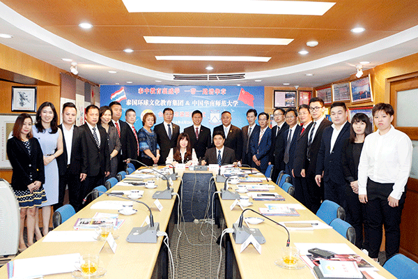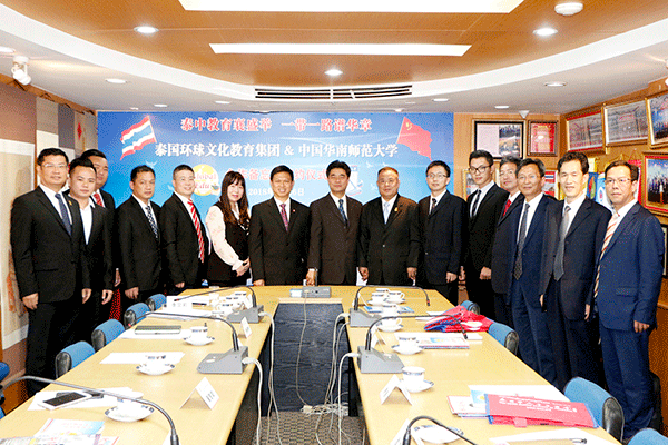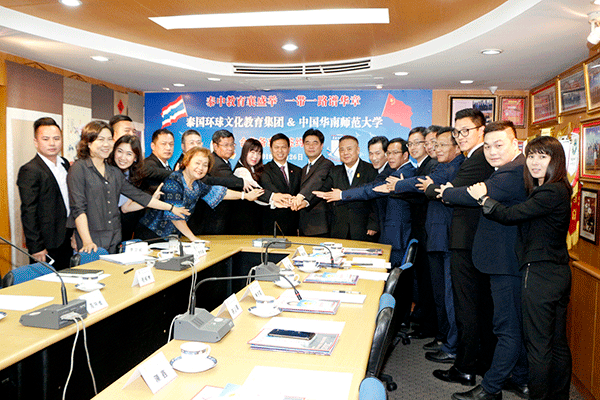 他强调,在习近平新时代新思想的引领下,祖国的“一带一路”建设再向纵深发展,目前泰国正大力推动“工业4.0”战略,与祖国“一带一路”倡议深入对接,以文化交流、教育合作、科技创新推进民心相通,提供人才支持,实现经济发展。泰国环球文化教育集团与中国华南师范大学合作备忘录的签署,华南师范大学泰国附属学校的尽早建立,将为泰中两国输送多语种、经贸、科技人才,培养两国友好合作的新纽带和接班人,是一个代表性强、意义重大的大工程,也将是泰中两国教育合作的首创,具有里程碑意义,将为推动泰国华文教育事业、促进泰中两国在科技、教育等领域的全面进步发挥积极作用。祝愿胡钦太副校长一行访问圆满成功,取得丰硕成果!