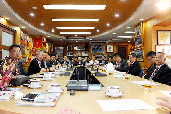 李桂雄会长对黄茂强主席一行的来访表示热烈的欢迎,并简要介绍了泰国华人青年商会18年来的发展历程,以及与汕头的友好往来。他表示,青商会成员与汕头关系密切,多年来心系桑梓,学习老一辈华人、潮人刻苦耐劳、勤奋创业的精神,积极参与祖国与家乡、汕头的经济建设,“汕头经贸联络处”就设在青年商会,长期以来为深化泰国与家乡汕头的友好往来、经贸合作、文化交流,做了许多卓有成效的工作。近年来,在广东省委省政府、汕头市委市政府及各级领导和家乡父老乡亲的共同努力下,汕头走上了振兴发展之路,大家积极为家乡汕头的发展献策出力,让汕头发生了日新月异的变化,以一个崭新的面貌出现在世人面前,让我们海外华人华侨对家乡的建设、发展充满了信心,强有力的唤起了大家的回归之心。青商会将一如既往的大力宣传汕头,引领更多的侨胞、企业家到汕头考察投资,共同参与汕头的经济建设与发展。李会长请黄茂强主席代为转达,向方利旭书记、郑剑戈市长及汕头市委市政府各级领导的亲切问候。