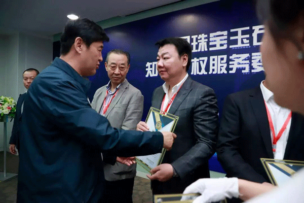 成立大会通过不记名投票,选举产生了中宝协知识产权服务委员会第一届理事会成员并颁发了证书,泰国中华总商会会董、国际潮青联合会名誉会长、泰国华人青年商会副会长、粤豪珠宝总裁周德奋当选为第一届理事会执行主任委员。现场,中国珠宝玉石首饰行业协会会长徐德明颁授证书。
