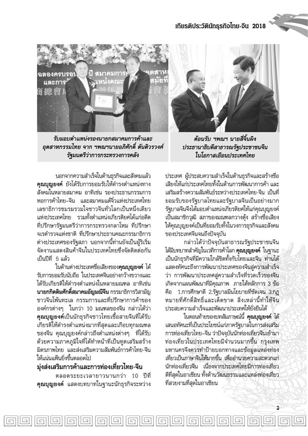 (เกียรติประวัตินักธุรกิจไทย-จีน แห่งปี 2018)