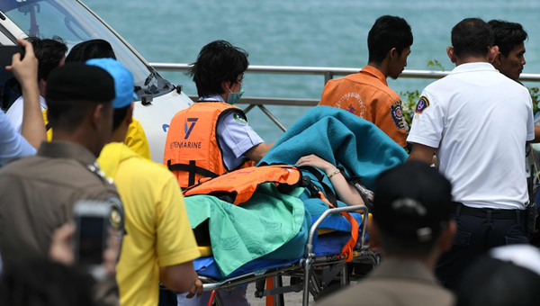 7月5日下午,两艘游船分别在普吉府珊瑚岛和梅通岛发生翻船事故,船上127名中国游客中,除78人获救外,截止目前,发现遇难者人数已达到40人,且数量仍在上升,受伤游客已送当地医院治疗。目前,中国外交部和中国驻泰国大使馆已启动应急机制,吕健大使在普吉救援现场指挥工作,积极协调泰方全力开展搜救工作、救治受伤人员。