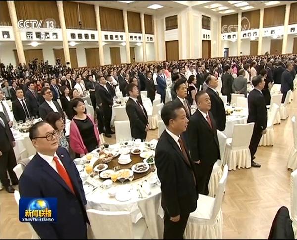 在欢快的乐曲声中,中外宾朋举杯共贺新中国成立六十九周年,同祝中国繁荣富强,人民幸福安康,中国和世界各国人民友谊长存。