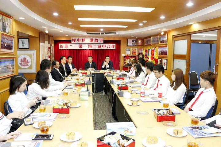 2018年中秋佳节来临之际,9月23日,泰国华人青年商会名誉会长、创会人之一,曼谷吞武里大学助理校长林栩,带领曼谷吞武里大学留学生代表团访问泰国华人青年商会,受到了泰国华人青年商会会长李桂雄等的热情欢迎与接待。并在青商会隆重举行“庆中秋、讲故事,促进“一带一路”泰中合作”座谈会,共庆中秋佳节!
