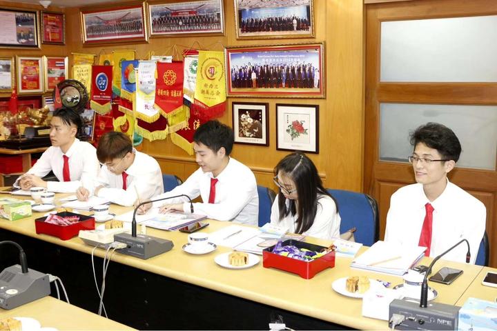 李桂雄会长首先代表泰国华人青年商会全体同仁对林栩会长和中国留学生代表团的来访表示热烈的欢迎,随后,李会长与留学生们讲述了许多华人在泰发展的一幕幕故事,以及青商会的发展历程。李会长结合自己38年前来泰时与现在的对比,感慨的说,对于30多年前来泰的新华侨新移民来说,身在异国他乡,生活工作都十分不易。但众人拾柴火焰高,当时我们满腔热血,就想着把中国改革开放后旅居泰国的新华侨新移民们团结起来,让大家抱团取暖,青商会的会徽就是一个蜜蜂蜂巢的标志,象征着我们新侨们要团结和勤奋,我们的初衷就是要把青商会打造成“新华侨之家,新移民之路”。19年来,我们秉承中华民族的优良传统,和刻苦耐劳、拼搏创业的精神,紧跟祖国发展,认真向老一辈华侨华人学习,积极参与祖国与家乡的经济建设,为泰中两国企业对接、合作牵线搭桥,为泰华社团培养了众多优秀的侨社接班人。现在商会的主体都成了泰华社会各行业的精英,架设了中国各省市与泰国沟通、合作的桥梁,在促进经济繁荣、社会进步、商贸交流、文教合作、公益慈善,特别是在促进两国企业合作,保护新侨在泰经商的合法权益,推动泰华社会的和谐、团结与发展等方面,做出了积极的努力。