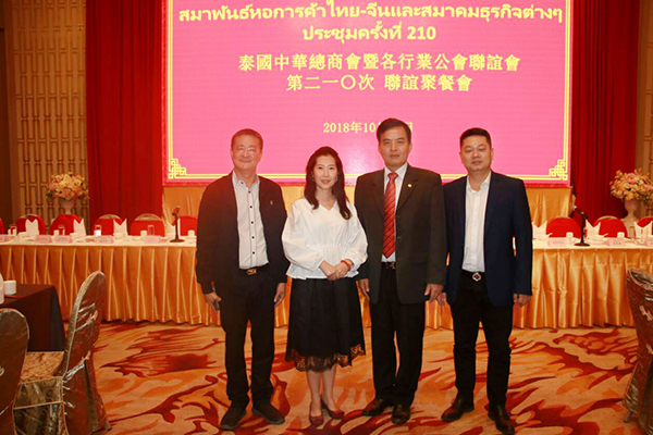 2018年10月16日(星期二),泰国中华总商会暨各行业公会联谊会第210次聚餐联谊会在泰国中华总商会光华堂举行,做东单位有泰国中华总商会。泰国会计法律公会,泰国云南商会,泰国联华药业公会,泰中华商会等。泰国中华总商会暨各行业公会联谊会主席陈振治博士致词,副主席兼执行主任林楚钦先生主持会议。做东单位领导致词,并恭请BBL资产管理有限公司传播主任塔能·坎通先生作“关于中美贸易战现况及各企业的因应方法”演讲。泰国华人青年商会出席的有副会长钟和武,副秘书长周昭耿、孙丽玲,总干事黄成。