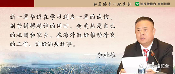 “1981年9月,我去到泰国,到今年9月刚好满37年。改革开放的中国及家乡汕头都发生了巨大的变化。我每一年都会回到汕头,这三十多年来都心系家乡,经常想到家乡的一草一木,一直希望祖国和家乡能持续发展。”李桂雄在接受橄榄台记者采访时说。