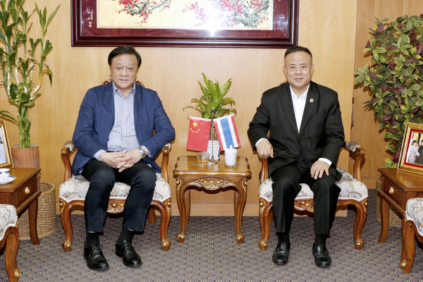 李桂雄会长与张玉文副主席共同回顾了泰中两国友好与文化交流合作的故事,李会长感谢张主席长期以来对泰中友好关系的关心和重视,并请转达向王石主席的问候。随后简介了青商会的发展情况,他说,张主席是我们泰华文化界的老朋友,是传播中华优秀文化的使者,此次来泰参加会议、举办活动,不仅深化了“泰中一家亲”,弘扬了中华优秀文化,特别是对展示中国文化自信,推动中国—东盟文化艺术交流具有重要的意义。泰中两国地缘相近、文化相通,泰国华侨华人华裔众多,目前是泰中两国合作的高峰期,欢迎张主席多来泰国举办有利于两国文化艺术交流的活动,以文化为纽带,推动两国友好与各领域商贸合作,共建共享,助力祖国“一带一路”建设。