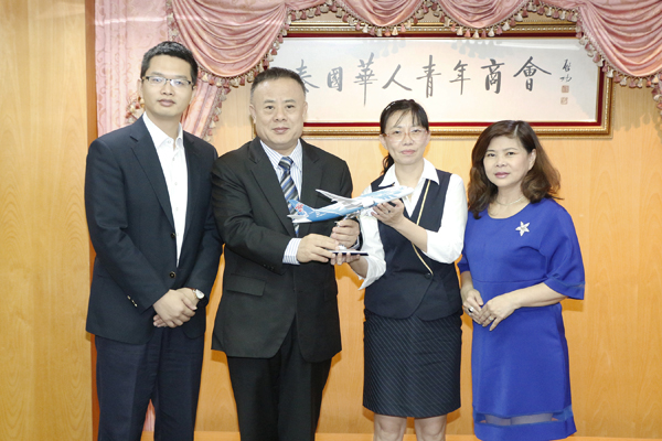 新年伊始,2019年1月9日,中国南方航空公司曼谷办事处总经理赵阳、销售经理钟鹏程、市场部主任陈佩玉等一行访问泰国华人青年商会,受到李桂雄会长等的热烈欢迎,双方互致新年祝福。