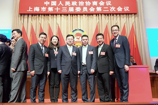 图:赵春森与共青团上海市委副书记、青联主席刘伟,青联秘书长沙丽娜等青联委员代表合影。