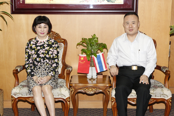 黄诗琳会长说,今天李会长百忙之中欢迎我们代表团,并与商会企业家们召开座谈会,让我们倍感欣慰与亲切,这次是我第四次来泰拜访泰国华人青年商会,李桂雄会长是我20多年的朋友,是侨界的一面旗帜、泰国新侨民的领军人物,多年来李会长热心搭建起全球侨界平台,领导的泰国华人青年商会,近二十年凭着一腔热血、一份眞心,不遗余力爲各位会员提供帮助,为中泰友好而努力,为两国的经贸合作、文化交流以及公共外交、侨务工作等做了大量无私的奉献,令我们十分敬佩,这些都是作为一个侨务工作者应该学习的地方,我代表广东海归协会和梁日辉会长对李会长所给予的鼓励表示感谢,向大家拜年,提前恭祝元宵节快乐。随后,黄会长介绍了广东省侨界海归协会的成立及发展,她说,近年来,中国飞速发展,整体经济实力明显增强,国际地位逐渐提升,政府出台了很多优惠政策,十分欢迎海外精英人才回国创新创业,中国良好的产业支撑、广阔的人才需求,给海外人才归国、海外项目落地创造了更多机会,凭着对侨务工作的热爱,她们创办了广东省侨界海外留学归国人员协会,会员以海外精英、归国华侨为主,协会发展至今,承接广东省关于海外人才、海归精英的各项工作,积极发挥纽带和桥梁作用,认眞履行职能,促成合作。在“一带一路”的大背景下,新商机不断涌现,希望以此次来访为契机,加强与泰国华人青年商会的联系,考察了解泰国的投资环境及可操作的合作项目,把中国成熟的产品和最新技术引入泰国,根据当地需求做好产品分类与项目分化,与青商会建立起长期共建共享机制,共同搭建中泰侨界合作新平台,为中泰华裔青年、海归、企业家间的合作切实做好服务。